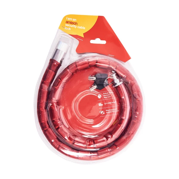 Steel cable with PVC coating for increased durability. Can be placed through the wheel to immobilise the cycle. Supplied with 2 keys. Ideal for bicycles, motorbikes and other anti theft uses.
