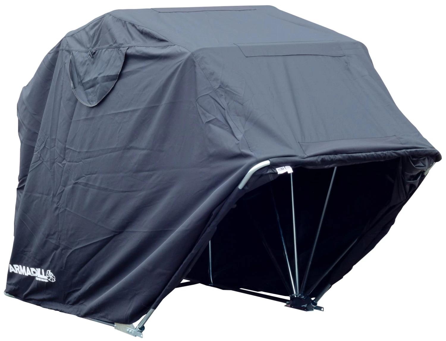 The Armadillo shelter is a unique folding design fabric structure to keep your motorcycle clean and protected from the elements.