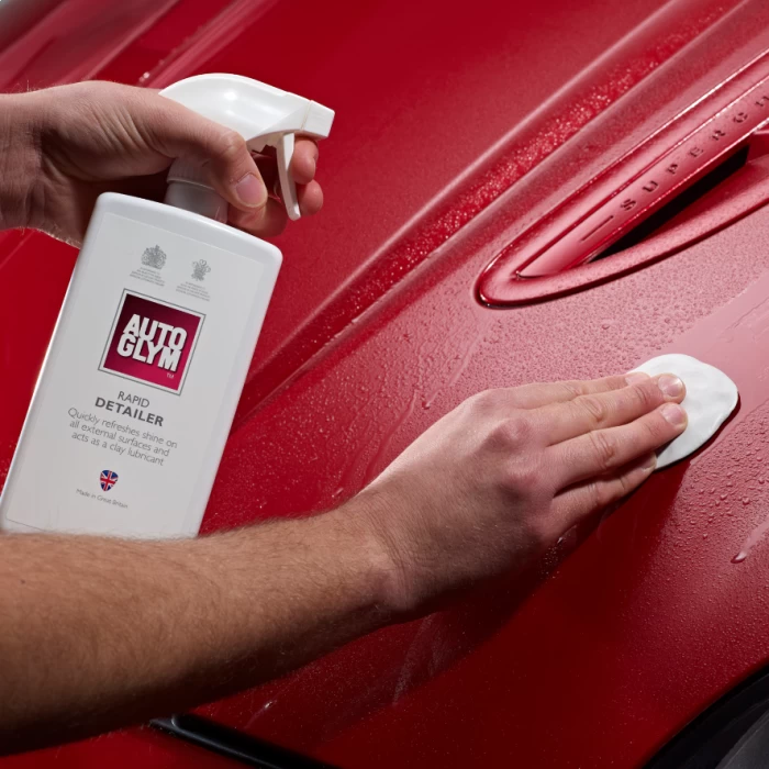 3.Ensure the vehicle is cool. Spray a generous amount of Rapid Detailer onto the clay and onto a small area of paintwork. Glide the clay lightly over the surface in straight lines.