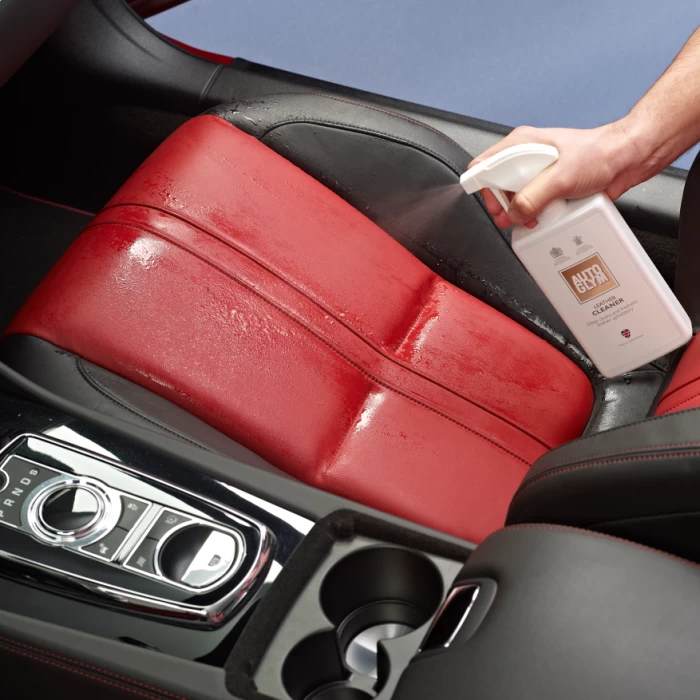 - Spray Leather Cleaner sparingly onto a microfibre cloth and gently apply to the leather, spending longer on any stains or dirt trap areas.