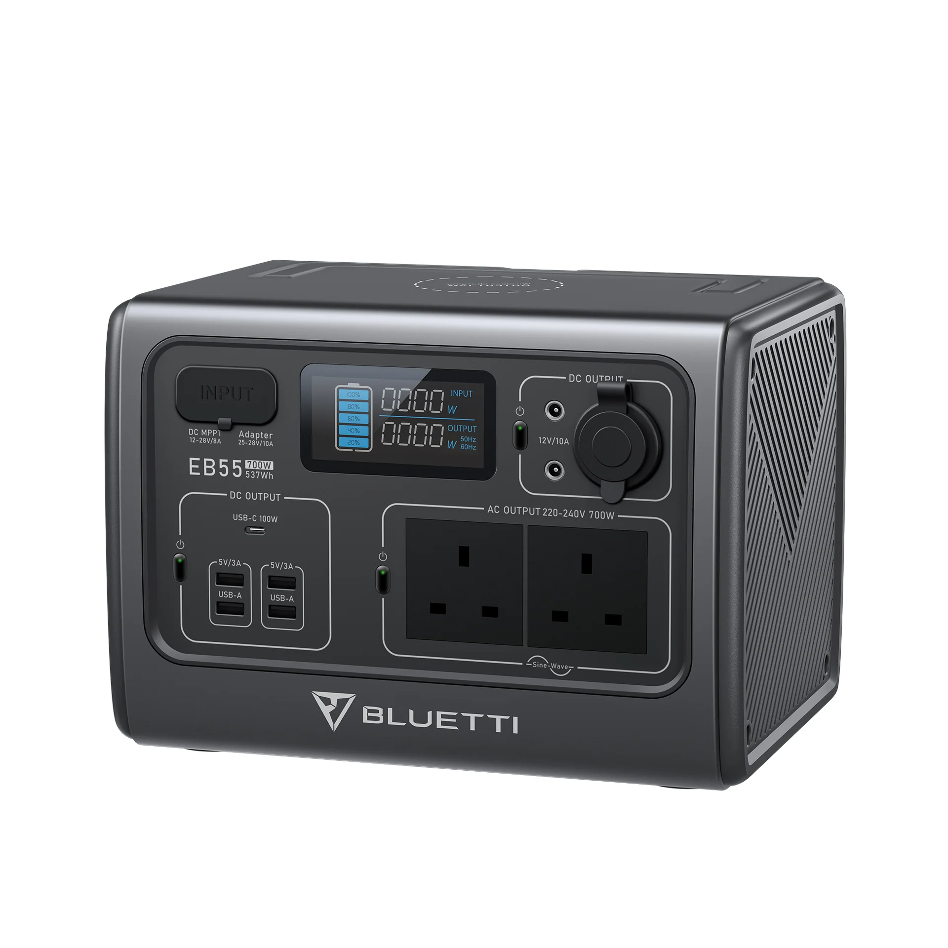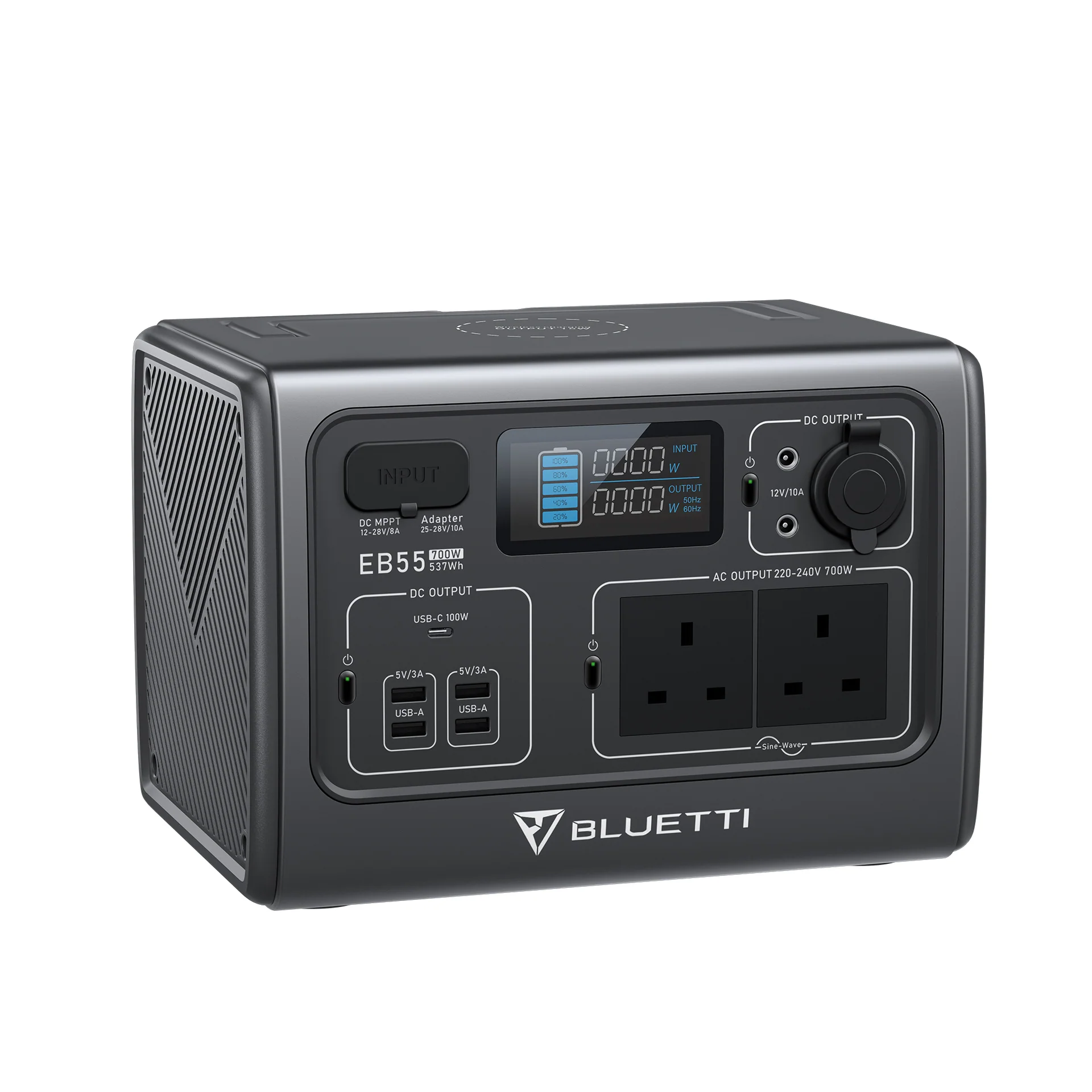 The Bluetti EB55 Portable Power Station is a compact and lightweight portable power station designed for camping and campervan trips. With a capacity of 537Wh and built-in 700W strong inverter, the EB55 could run most of your outdoor accessories and electronics. The EB55 can run 11 devices simultaneously. From a smartphone to a mini-fridge, with it’s wireless charging pad making it even more versatile.