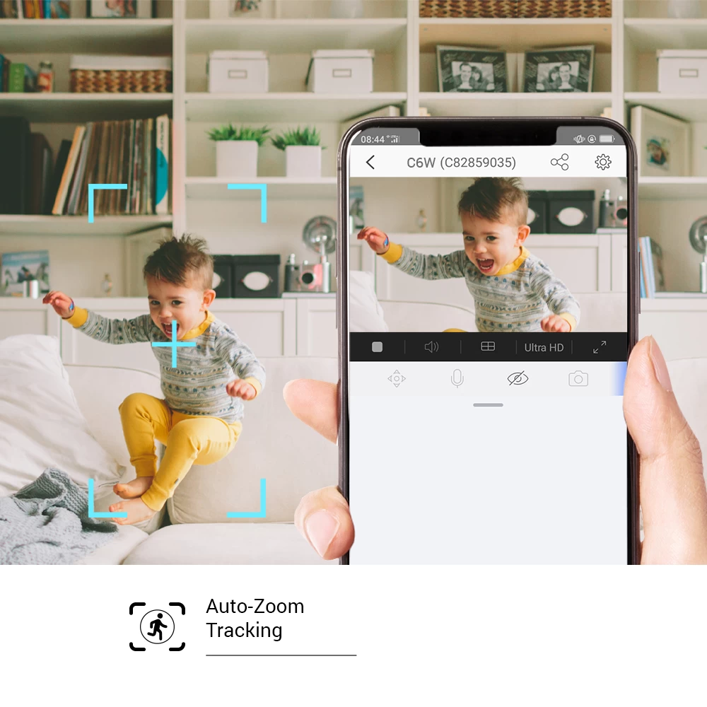 Secure Your Home Night & Day – Using 2 powerful infrared lights, the C6W camera is able to render sharp night-time imaging up to 10 meters away. This indoor camera is smart enough to automatically switch between day and night vision. You can rest assured knowing your home and belongings are protected 24/7. This small but powerful camera records images in 2K resolution, providing crisp details even in 4x digital zoom.
