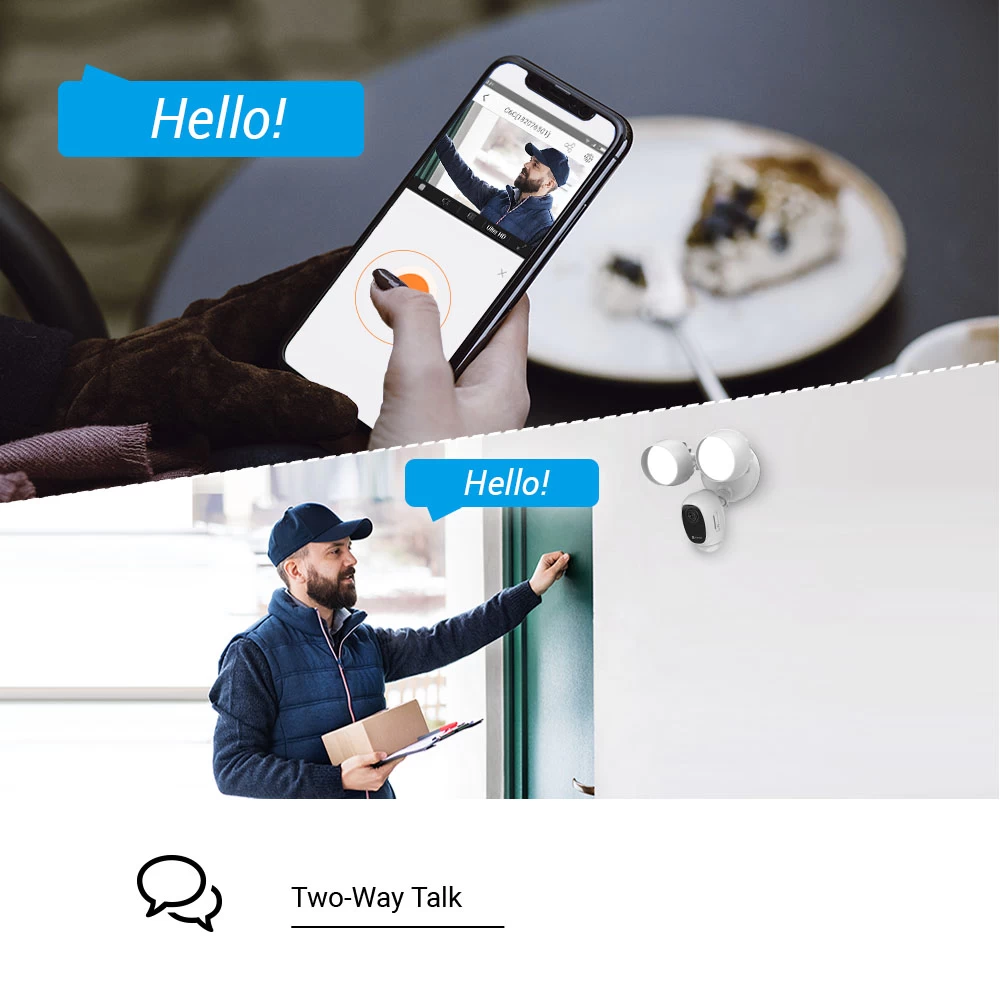 Two-way Talk – Coming integrated with professional de-noising algorithm, this camera is able to filter background noise for enhanced voice quality. Thanks to the internal waterproof MIC, this outdoor floodlight camera supports audio pickup within five meters and video recording with sound via the EZVIZ app.