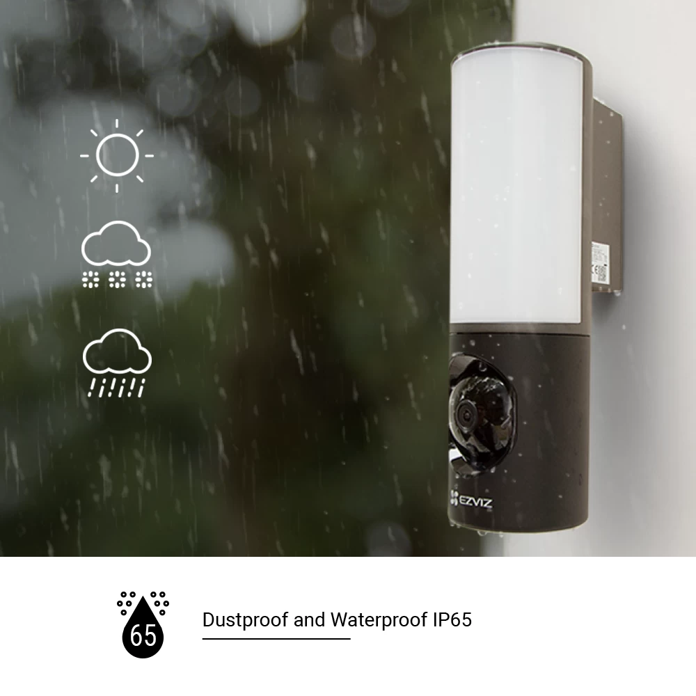 24/7 Clarity – The LC3 Outdoor Smart Security Wall-Light Camera renders video that’s not only brighter, but also clearer. Thanks to its 4MP camera, the LC3 excels at delivering high-quality imaging with sharp details. It’s ideal for even large space monitoring. Designed with a large, f2.3 aperture and night vision of up to 10 meters the EZVIZ LC3 renders clear images in dim light. Even better, the LC3 camera provides extra support to late-night surveillance thanks to its colour night vision feature, which can be automatically or manually switched on with the use of the built-in light