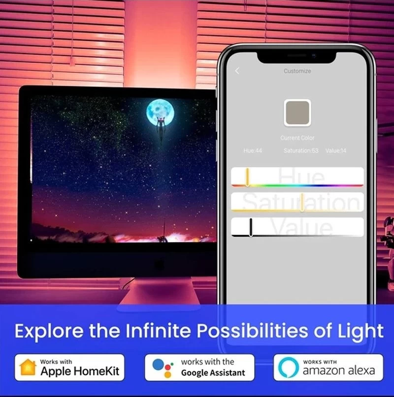 The Lifesmart Cololight Strip 60 LED 2m Starter kit works with Google Assistant and Amazon Alexa creating a personal experience. Not only is the Lifesmart Cololight Strip 60 LED 2m Starter kit practical, lighting up any dark or dull space to make a statement in any room but it also works with the Apple Home app and has the ability to sync with music.