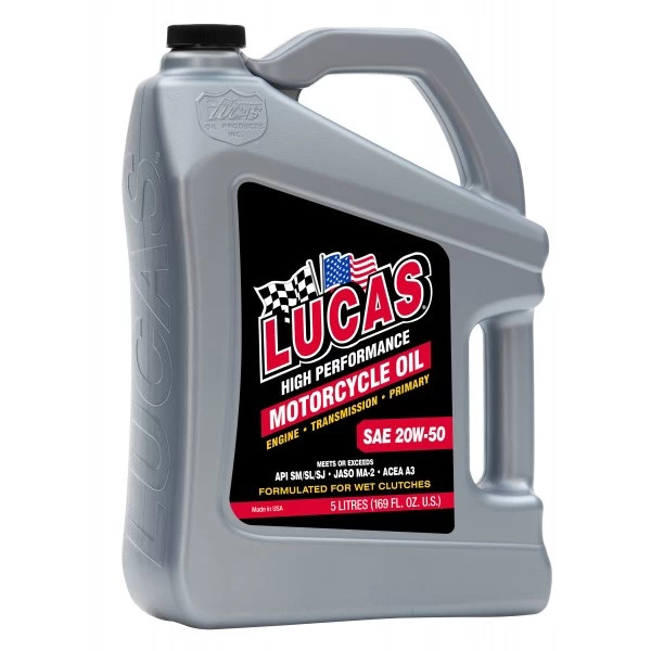 Lucas High Performance Motorcycle Oils are the result of technology gained through years of blending motor oils and gear oils for the racing industry. These are TRUE racing oils that FAR exceed all manufacturer specifications and can outlast other oils up to 4 times on the track or on the street. Lucas Motorcycle Oils are built for endurance. These oils will lower oil temperatures, extend the life of vital components, reduce noise and leaks and increase performance. SAE 20W-50 is also an excellent gear oil and primary oil.