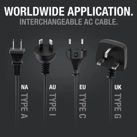 - Includes a 56-watt power adapter, plus a selection of 4 cord sets for Australia, Europe, North America, and United Kingdom.