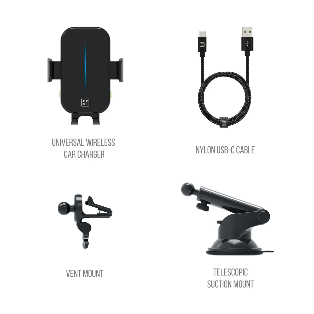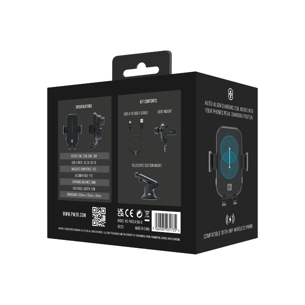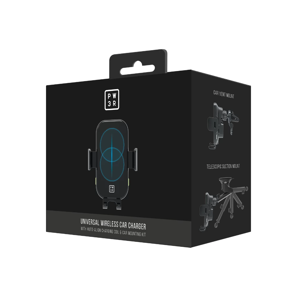 The PW3R Universal Wireless Charger is designed with an auto-aligning wireless coil that automatically moves and syncs with your phone’s charging coil. This auto-aligning wireless coil keeps your phone aligned to ensure it is always charging at optimum speeds. The PW3R Universal Wireless Charger features an automatic sensor that ensures the mount arms of the wireless charger close effortlessly to secure your device. This charger is Qi compatible, making it suitable for various devices, including iPhones. This device is the perfect companion for on-the-road charging and keeping your phone secure.