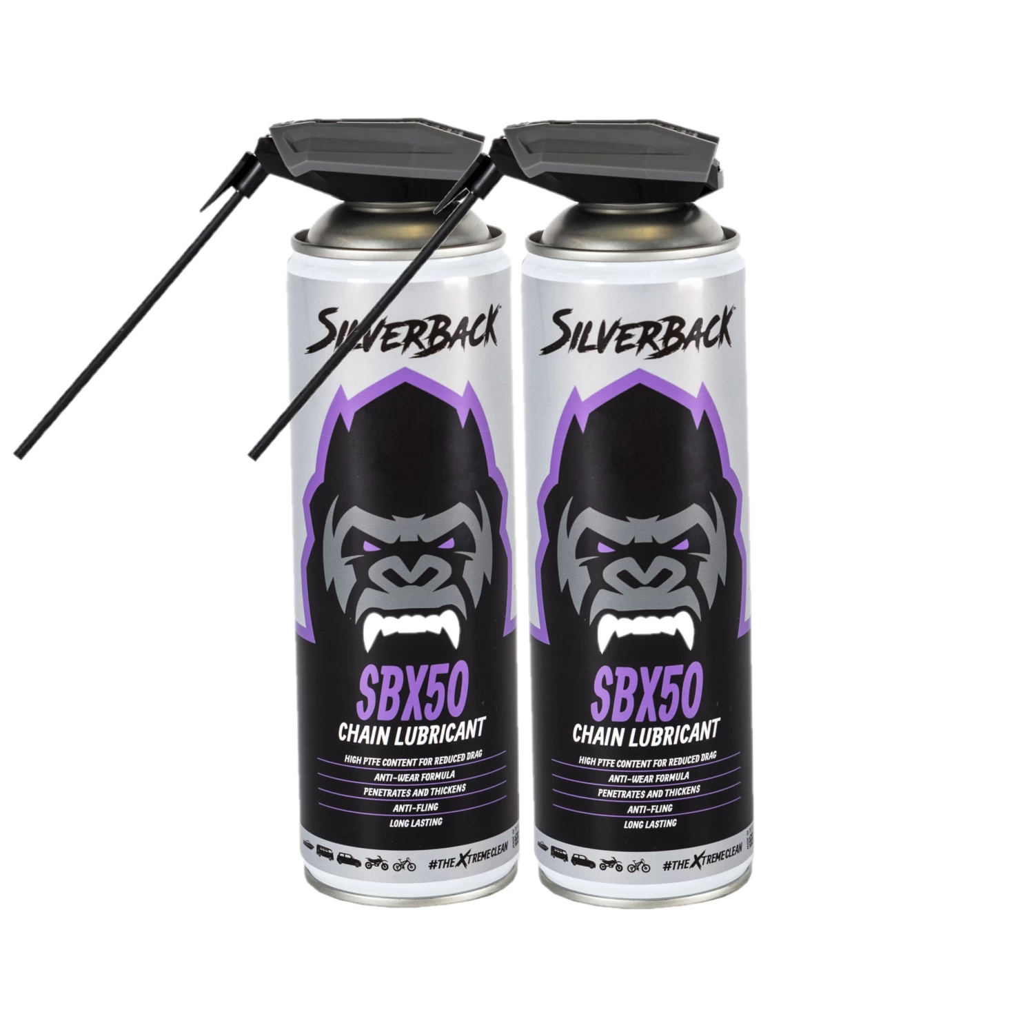 Our SILVERBACK SBX50 Chain Lubricant is a dry, grease-based lubricant which has been enhanced with PTFE. Its strong, adhesive properties are ideal for gears, chains and sprockets. It applies wet, enabling penetration into links before thickening and then drying.