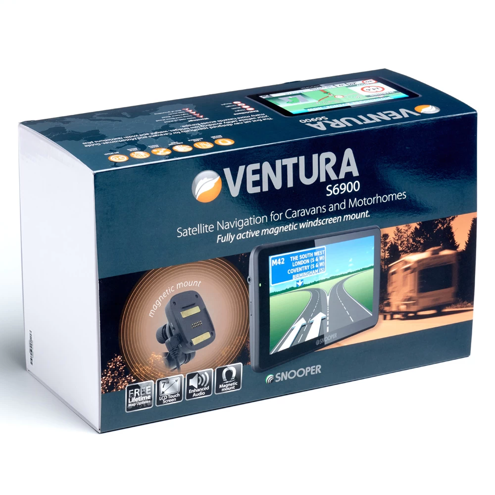- Designed specifically for caravans and motorhomes, the Snooper Ventura calculates safe routes based on your vehicles width, length, height and weight