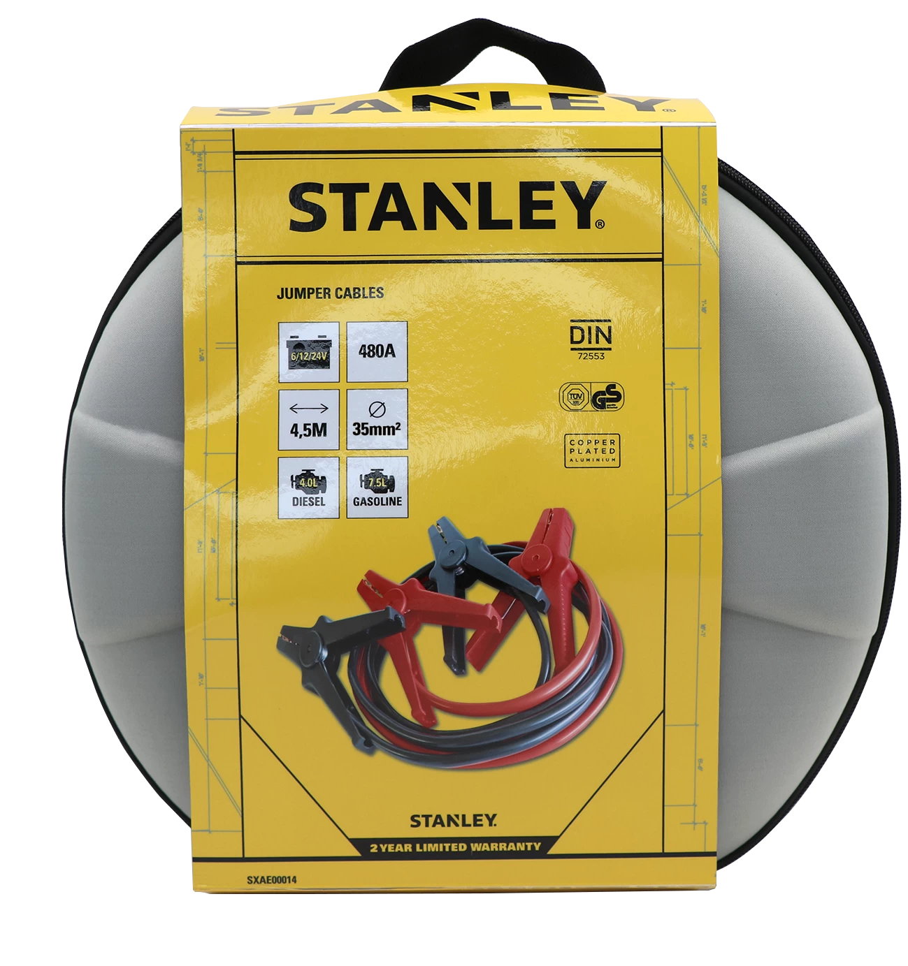 In the event of a breakdown, the Stanley Jumper Cables 35mm² 4.5 M will have you up and running in no time. Providing the ability to restart any 6V, 12V or 24V battery up to 350A, such as cars, bikes and lawnmowers, they promise to bring power and reliability to your vehicle. They are made from a high quality copper plated aluminium cable and have high-end insulated clamps which prevent the risk of short circuit.