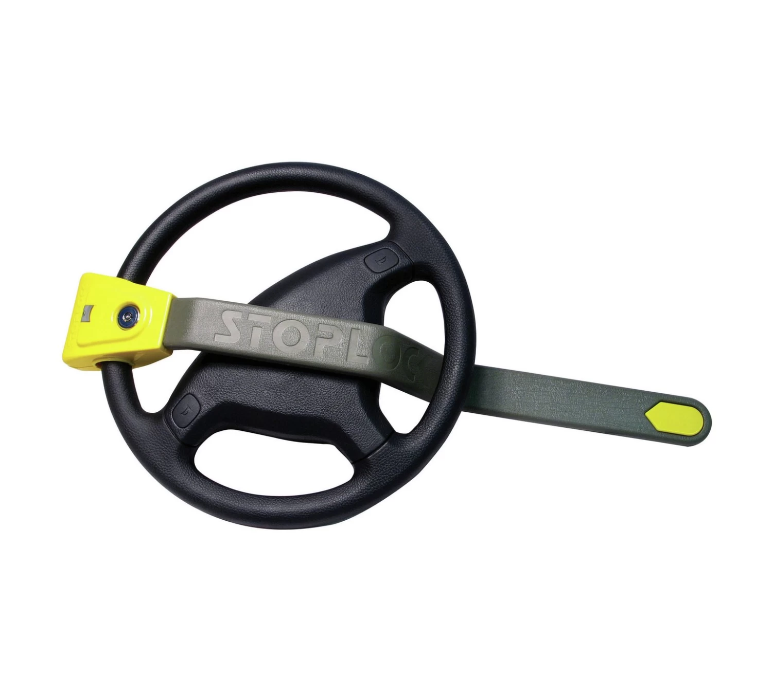 The Stoplock Airbag Steering Wheel Immobiliser has been specifically designed for larger vehicles with bigger steering wheels. The lock will fit most vehicles, including Vans and 4×4’s. The lock secures across the centre of the steering wheel which means there is extra protection against air bag theft. A unique flashing LED feature is included to add further security in the dark or at night, optimising the deterrent factor which the steering lock provides. The product can be fitted in seconds and will even snap shut without a key. Stoplock products are as easy to store as they are to use.